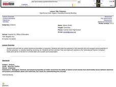 Students explore online tutorial on polymers. In this chemistry lesson, they create two polymers in the lab and compare their properties. They write a sales letter about their new and improved polymer product.