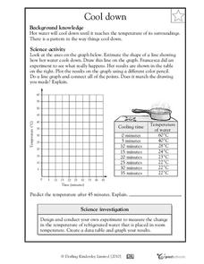 How fast does water cool? First fifth graders will draw a line on a graph that predicts how fast they think water can cool from boiling. Then they plot the actual data on the same graph to see if their estimate was correct.