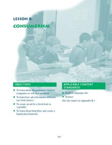 Students examine the techniques that companies use to sell their products. In this consumerism lesson plan students create an ad for a company and create a handcrafted butterfly.