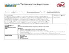 Students analyze advertisements and develop guidelines for viewing advertising. In this advertising lesson plan, students discuss print ads, TV commercials, and other examples of ads. Students survey their friends or relatives about...