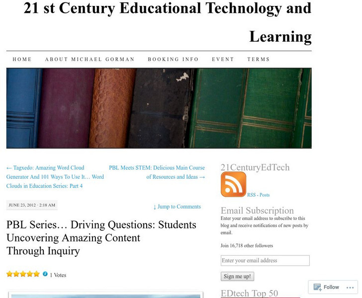 This blog post provides background on the concept of Driving Questions as a basis for Project-Based Learning and gives some direction for how to create them. The links at the end of the blog allow teachers to explore this technique more...