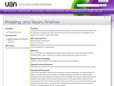 This instructional activity addresses proper seam allowances, how those seams should be finished, and the importance of pressing them. Class members learn by listening as well as by practicing and creating their own samples. There are...