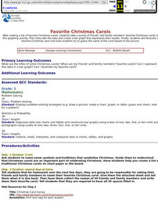 Third graders take a survey of friends' and family members' favorite Christmas carols. They illustrate a favorite Christmas carol and have students try to guess the name of the carol based on the picture.