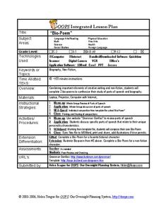 Students explore parts of speech that relate to their personality characteristics. They examine parts of speech online, and compose a bio-poem that combines the parts of speech with a biography.