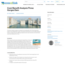 Middle schoolers, in groups, take various roles in evaluating the costs/benefits of the Three Gorges Dam project on the Yangtze River in China.