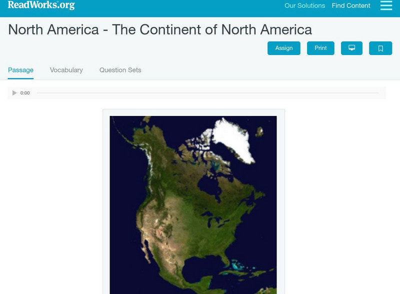 [Free Registration/Login Required] An informational text about the continent of North America and the countries it contains. A question sheet is available to help students build skills in reading comprehension.