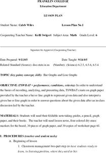 Sixth graders, after reviewing and studying the basics of recording, analyzing and presenting data, create on graph paper a bar or line graph to represent given data and then interpret the data. They answer questions about the given data...
