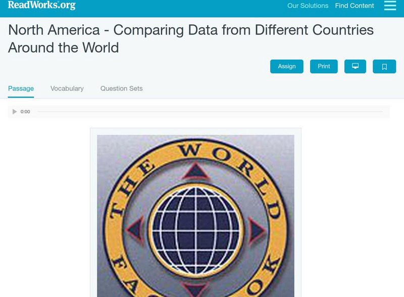 [Free Registration/Login Required] A chart with land and population data from Canada, the United States of America, the United Kingdom, and Japan. A question sheet is available to help students build skills in reading comprehension.
