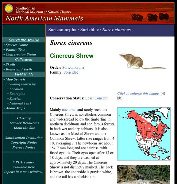 National Museum of Natural History: American Mammals: Cinereus Shrew