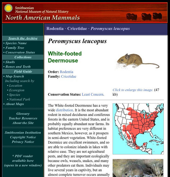 National Museum of Natural History: American Mammals: White Footed Mouse