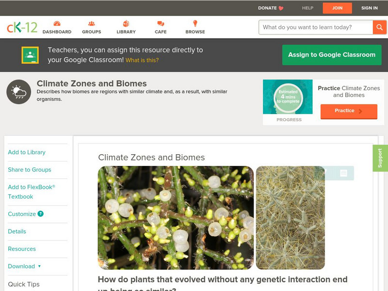 [Free Registration/Login may be required to access all resource tools.] Describes how regions with similar climates are grouped into climate zones and biomes.
