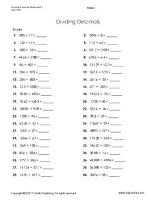 In this dividing decimals instructional activity, students use their math skills to solve 45 problems that require them to divide decimals by 0.001.
