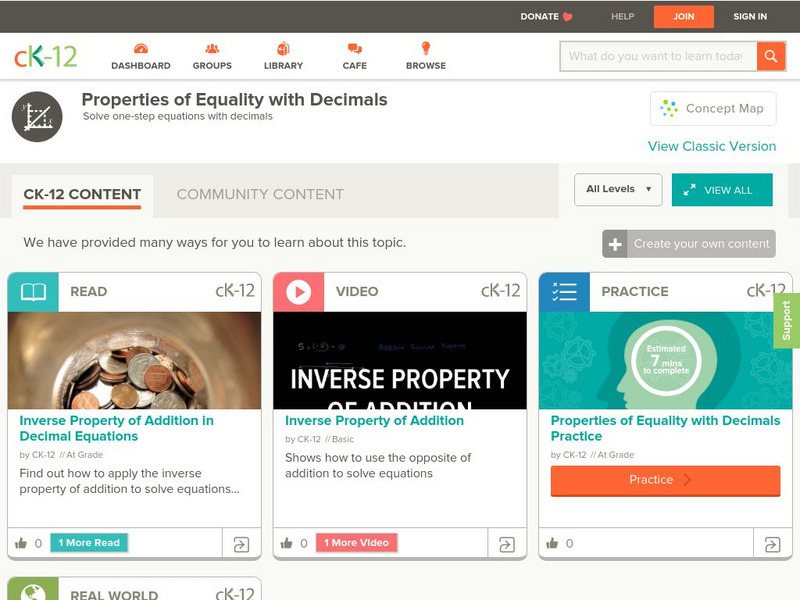 [Free Registration/Login may be required to access all resource tools.] This site helps students to learn to identify and apply the inverse property of multiplication in decimal operations with expressions. Students master the concept by...