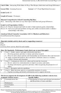 Active listening is key to interacting with others in a way that shows respect. To develop their skill as listeners, high schoolers first play the "Telephone Game" to demonstrate some of the problems that arise in communication. Pairs...