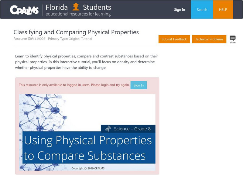 Florida State University Cpalms: Florida Students: Classifying & Comparing Physical Properties