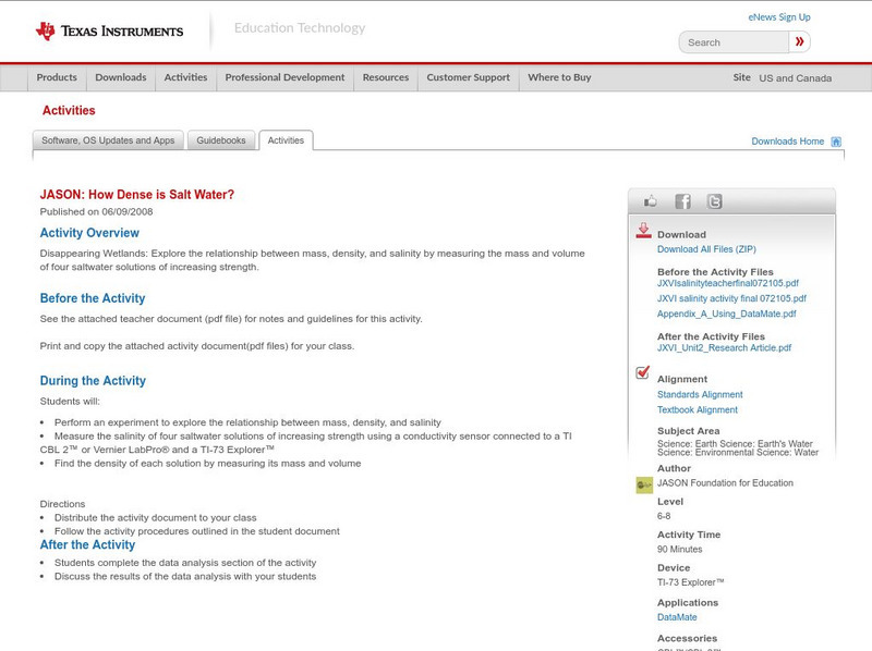 Texas Instruments: Jason: How Dense Is Salt Water?