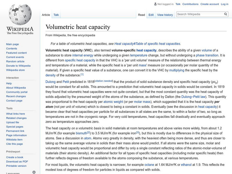 Wikipedia offers a brief definition of the term, "Volumetric heat capacity." Includes hyperlinked terms.