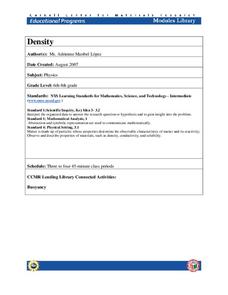 Young scholars investigate why some objects float or sink in water. In this physics lesson, students calculate the density of clay ball using a mathematical equation. They write a complete lab report about the experiment.
