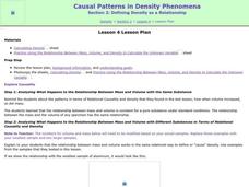 Learners discover the property of density while participating in a lab exercise. In this scientific measuring lesson, pupils utilize a scale to measure the density of different metal materials. They document their work and present their...