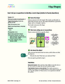 Students play a game in which they name geometric shapes. In this geometric shape instructional activity, students ask "yes and no" questions to determine which shape one of their classmates has chosen. They ask questions that lead them...
