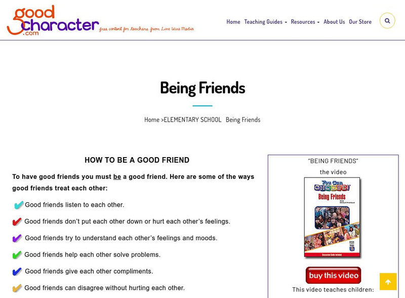 There are certain things you must do in order to be a good friend. Find a list of these things at this website as well as questions and activity ideas that will help you discuss friendship with classmates and family.