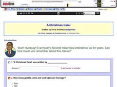 This online quiz may be fun for readers to take on their own to self-assess basic understanding of Dickens' A Christmas Carol; however, the lack of rigor makes this questionable as a class assignment. These online, interactive quizzes...