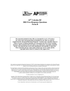 Take another look at the exam. A set of questions is a different form for the 2004 AP® Calculus BC free-response question section. The questions are evenly split into calculator and non-calculator sections. Pupils use their knowledge of...