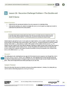 Math is all fun and games! Use a game strategy to introduce the concept of sequences and their recursive formulas. The activity emphasizes notation and vocabulary.
