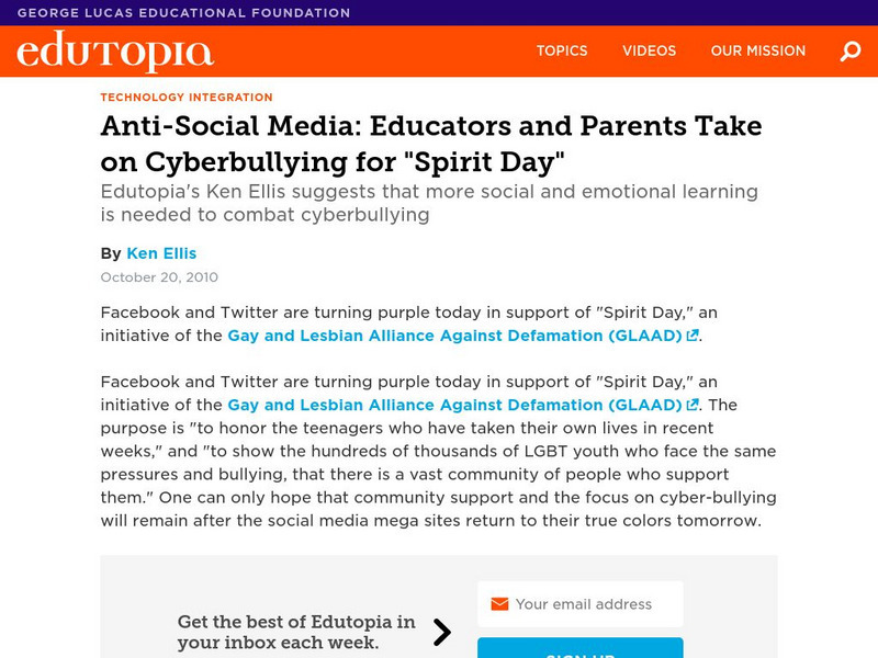 Edutopia: Anti Social Media: Spirit Day: Educators and Parents: Cyberbullying
