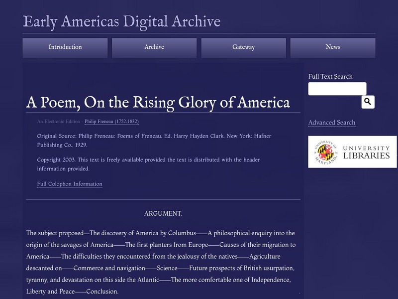 Early Americas Digital Archive: A Poem, on the Rising Glory of America