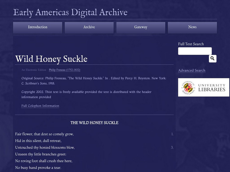 The complete text of the poem "Wild Honey Suckle" by Philip Freneau.