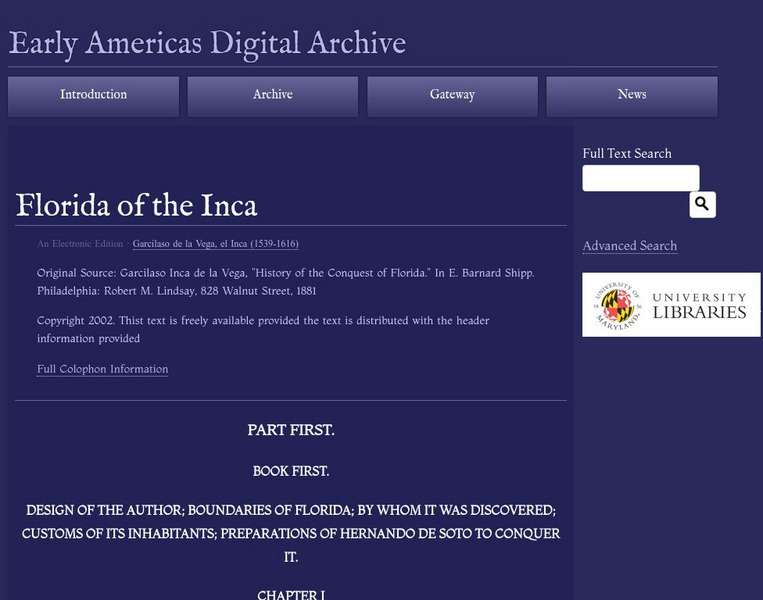 An electronic text of Florida of the Inca by Garcilaso de la Vega.