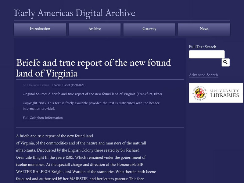 Early Americas Digital Archive: Brief Report of the New Found Land of Virginia