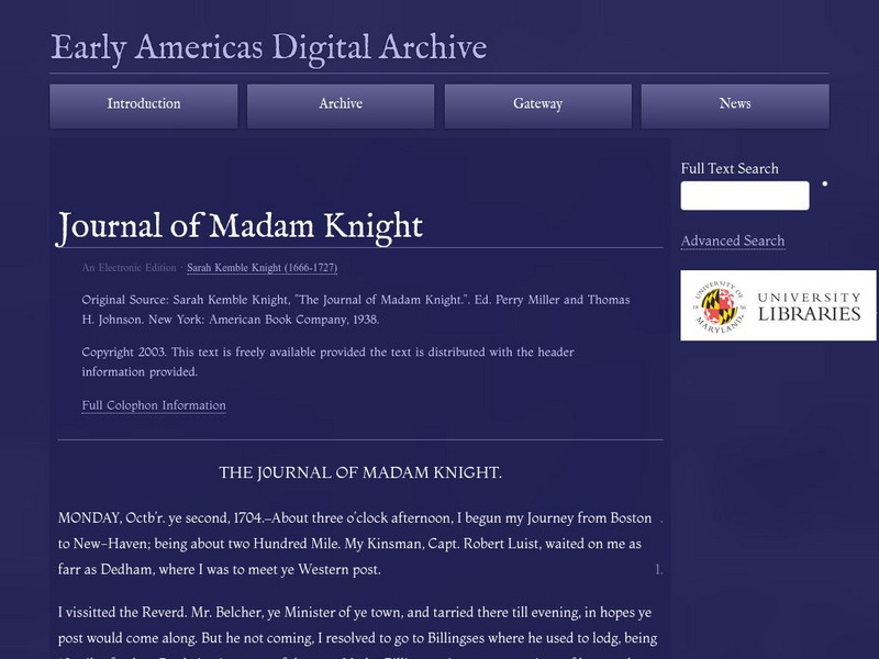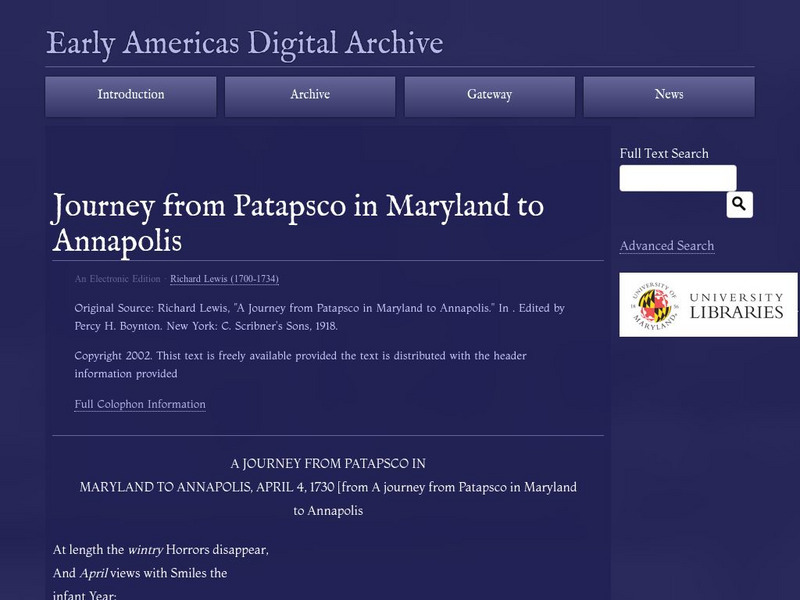 Early Americas Digital Archive: Journey From Patapsco in Maryland to Annapolis