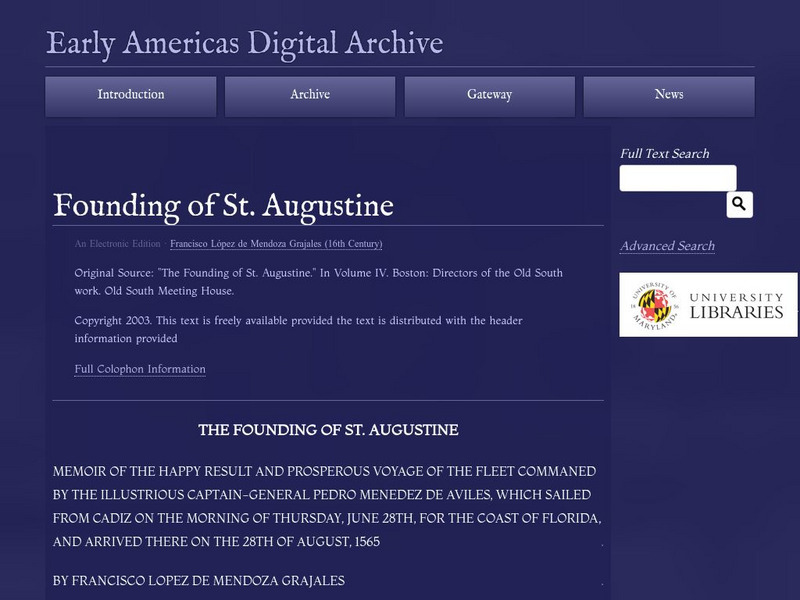 The complete text of "The Founding of St. Augustine" by Francisco Lopez de Mendoza Grajales.