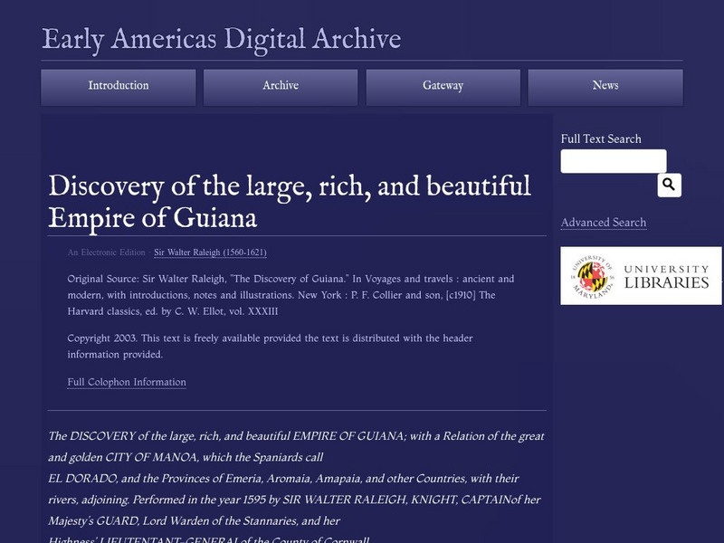 Early Americas Digital Archive: Discovery of the Beautiful Empire of Guiana