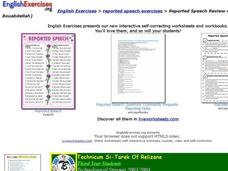 In this grammar worksheet, learners complete sentences using reported speech, reported questions, and conditional sentences. Students answer thirty two fill in the blank questions.
