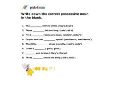 In this possessive noun instructional activity, students write the correct possessive form of nouns given to correctly complete sentences.