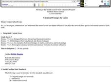 Seventh graders observe that heat is produced when two substances are combined. They brainstorm how, and then experiment to find out which of two chemicals created the heat.