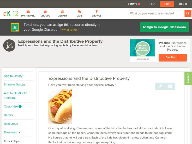 [Free Registration/Login may be required to access all resource tools.] Learn to identify when to use the Distributive Property.