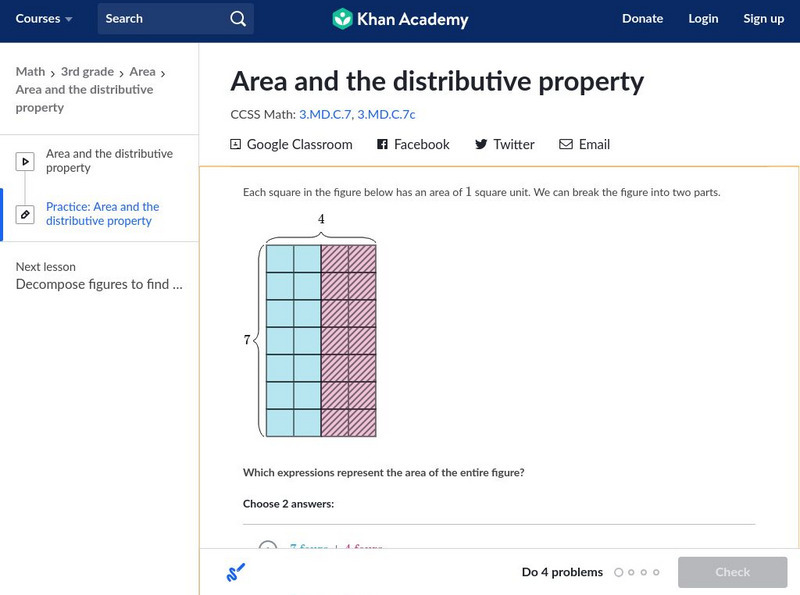 Khan Academy: Math: 3rd Grade: Visualize Distributive Property (Practice)