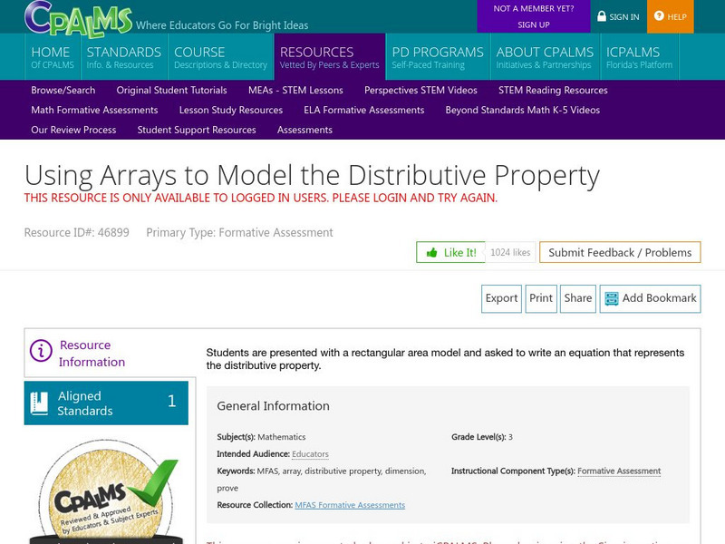 [Free Registration/Login Required] Students are presented with a rectangular area model and asked to write an equation that represents the distributive property. Detailed lesson plan provided, along with assessment methods,...