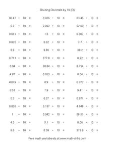 Here is a decimal division worksheet, pupils enhance their division skills by dividing the given decimals by 10. They solve 45 problems.