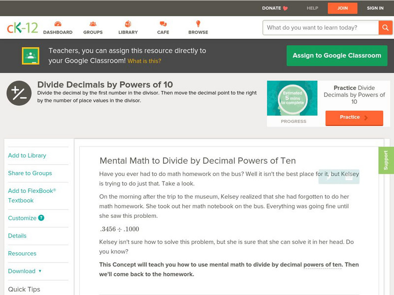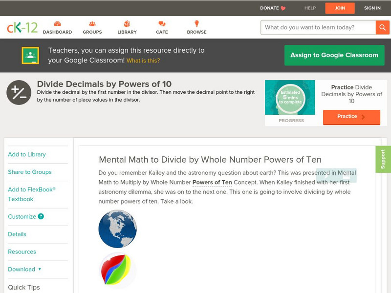 Ck 12: Mental Math to Divide by Whole Number Powers of Ten