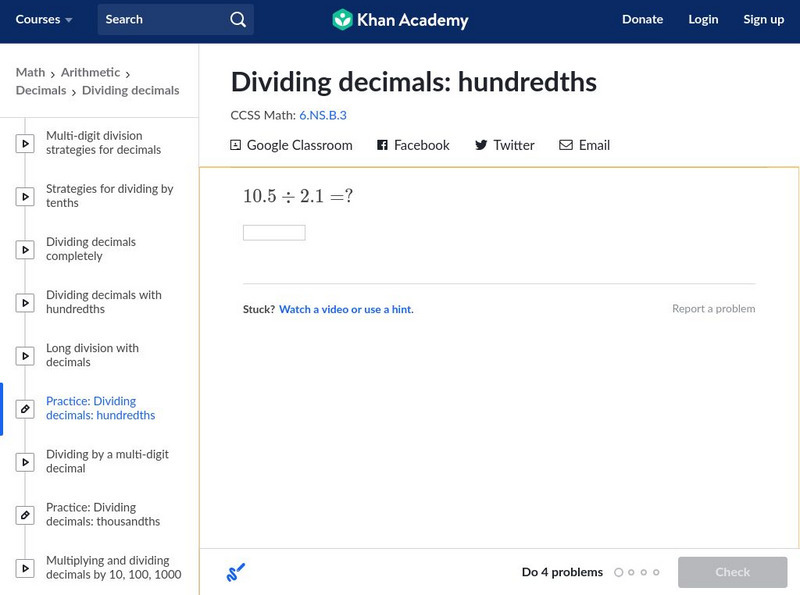 Khan Academy: Dividing Decimals: Hundredths