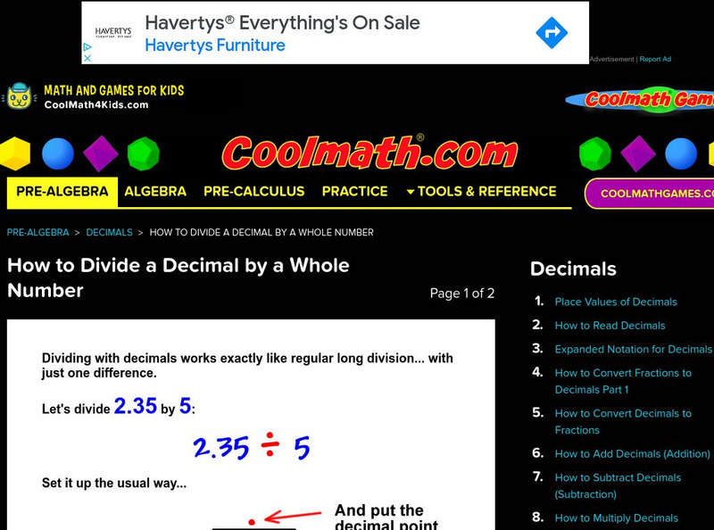 Coolmath: Decimals How to Divide a Decimal by a Whole Number