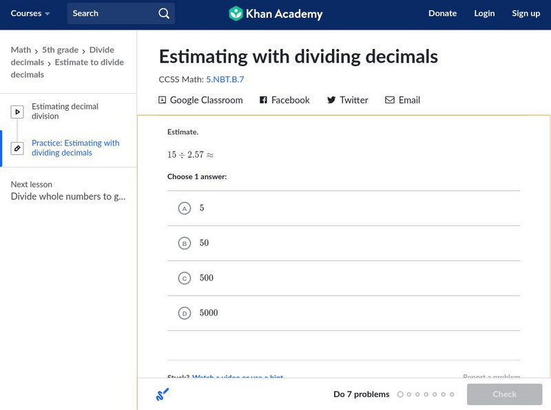 Khan Academy: Estimating With Dividing Decimals