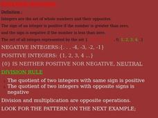 Add an engaging resource to your lessons on rational numbers and watch your pupils' understanding multiply. Learners determine rules for adding, subtracting, multiplying, and dividing integers. Individuals then extend these rules to all...