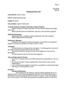 Help your class find patterns in polynomial multiplication. Pupils multiply a trinomial by a binomial using a graphic organizer. They respond to questions about patterns observed in polynomial multiplication before a discussion question...