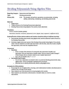 Discover how algebra tiles can help in dividing polynomials. Pupils watch as instructors demonstrate how to use algebra tiles to solve problems involving the division of a quadratic expression by a linear expression. Once they get the...